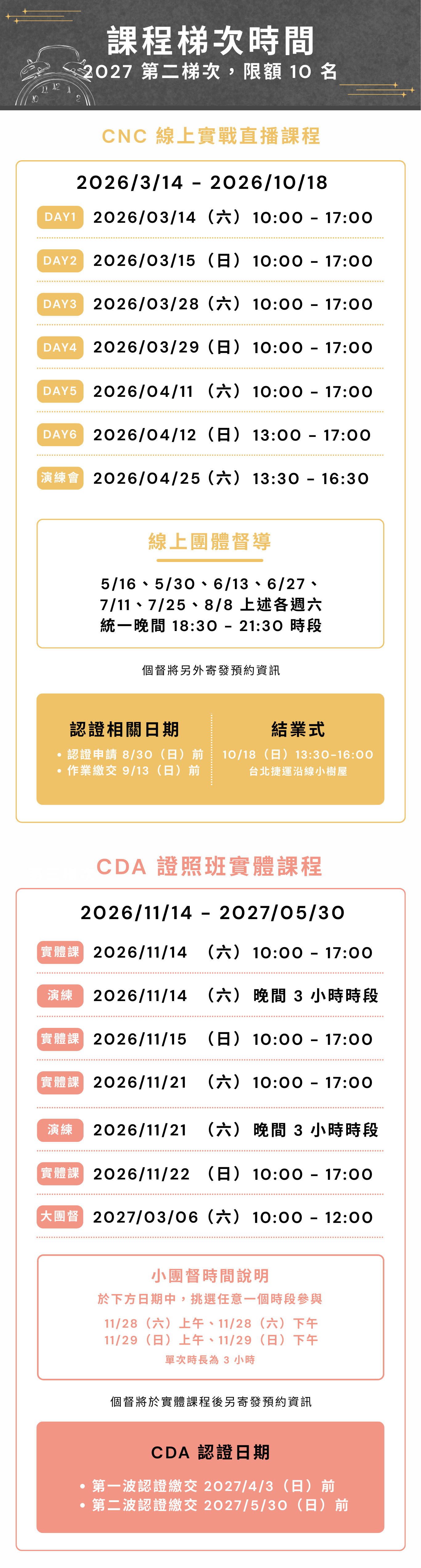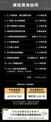 * 務必請留意,於購課後如申請退費,將酌收 5-10% 金流手續費,及視申請退費時間另酌收行政手續費,詳情退費說明請見下方常見問題,請務必於確認可接受後始報名。