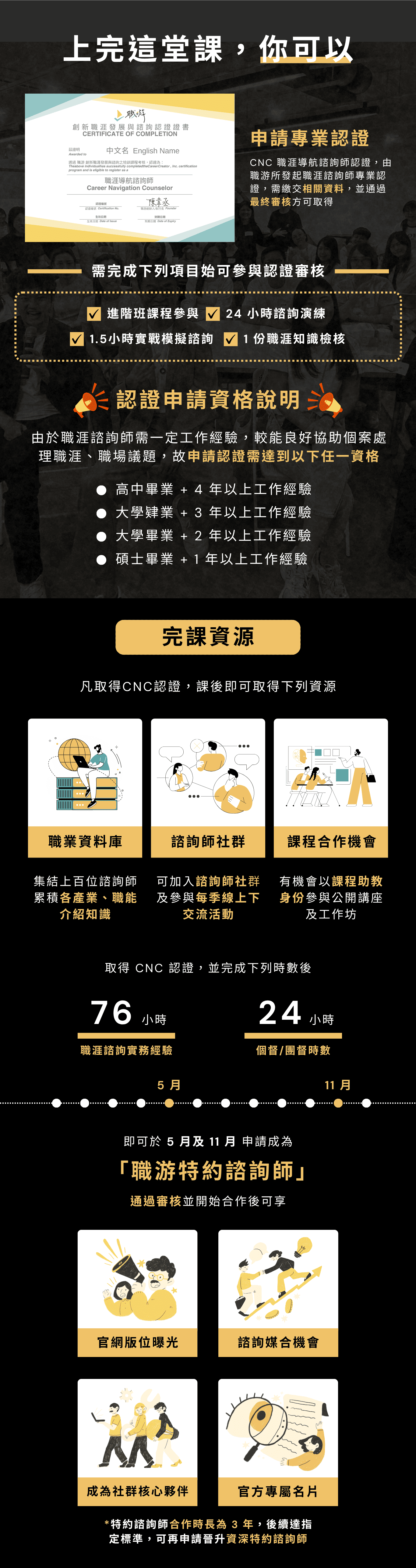進階班所有課程時數、實體見面會,包含個督時數,以總課程時數 65 小時計算。