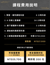 ※開課 7 天內 通知:90%-95% 課程費用,將扣除行政手續費 $1000 後退還