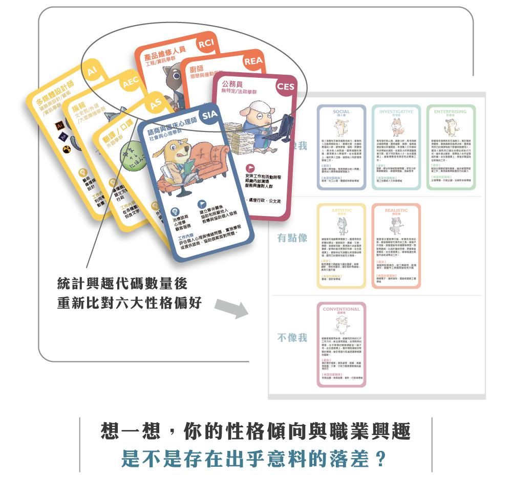 對照六大性格的結果,比較職業牌卡右上角的興趣代碼,