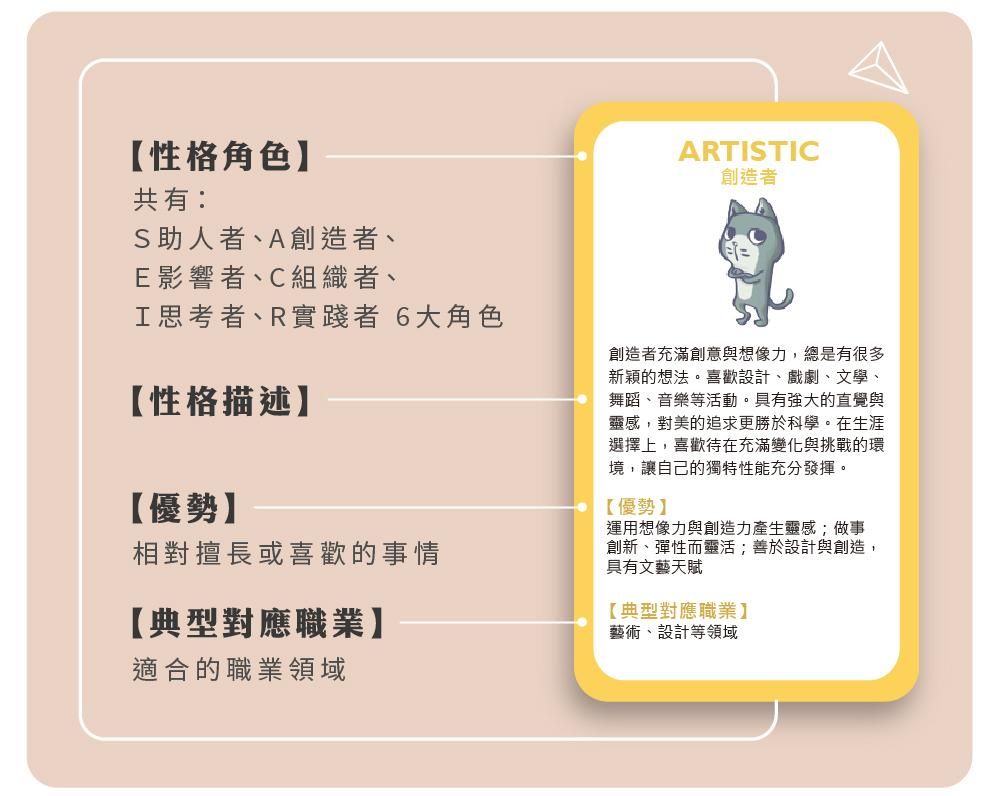 職游旅人卡以 John Holland 職業興趣論為基礎,