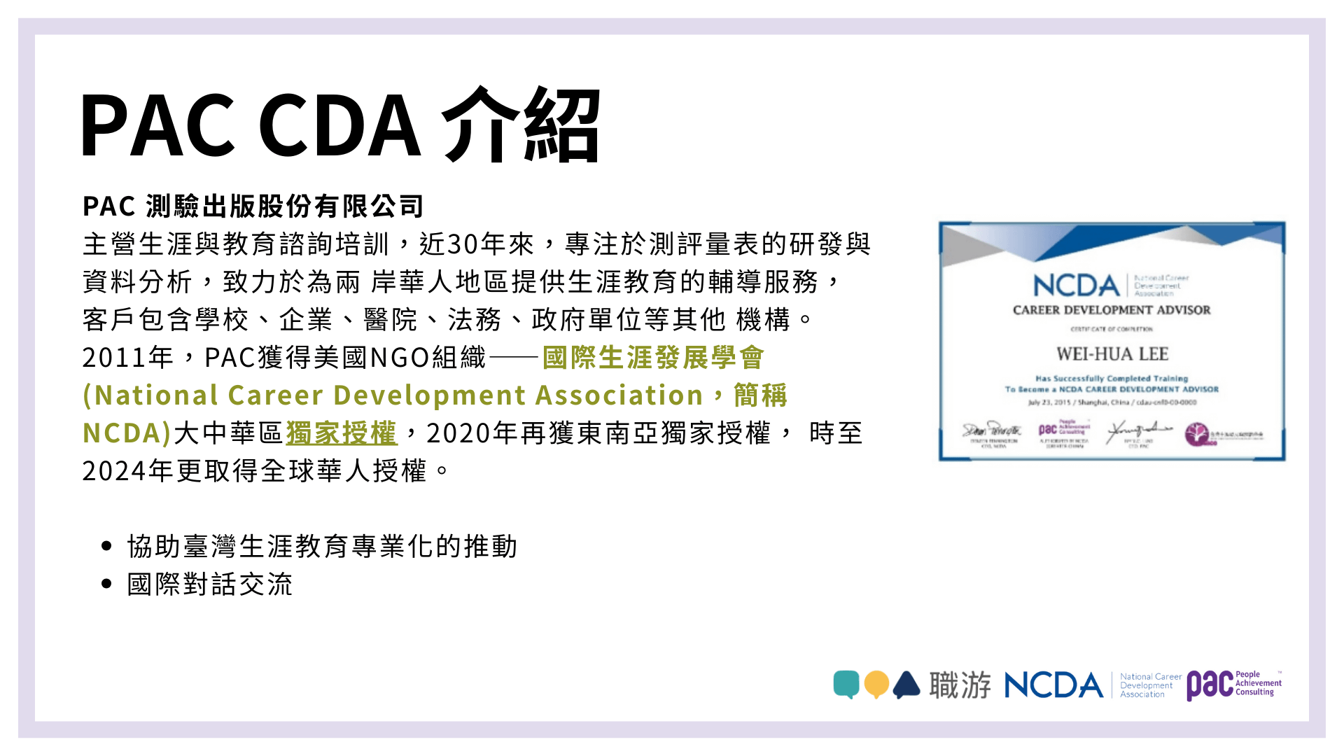 用相當具有競爭力的價格與集中的認證時間 獲得全球最大的生涯培訓認證