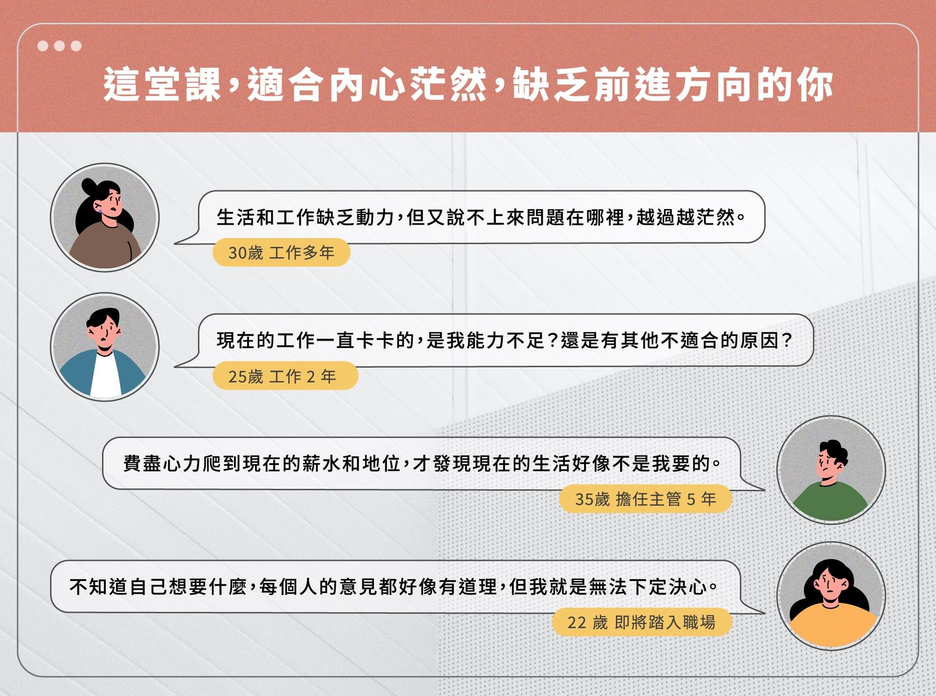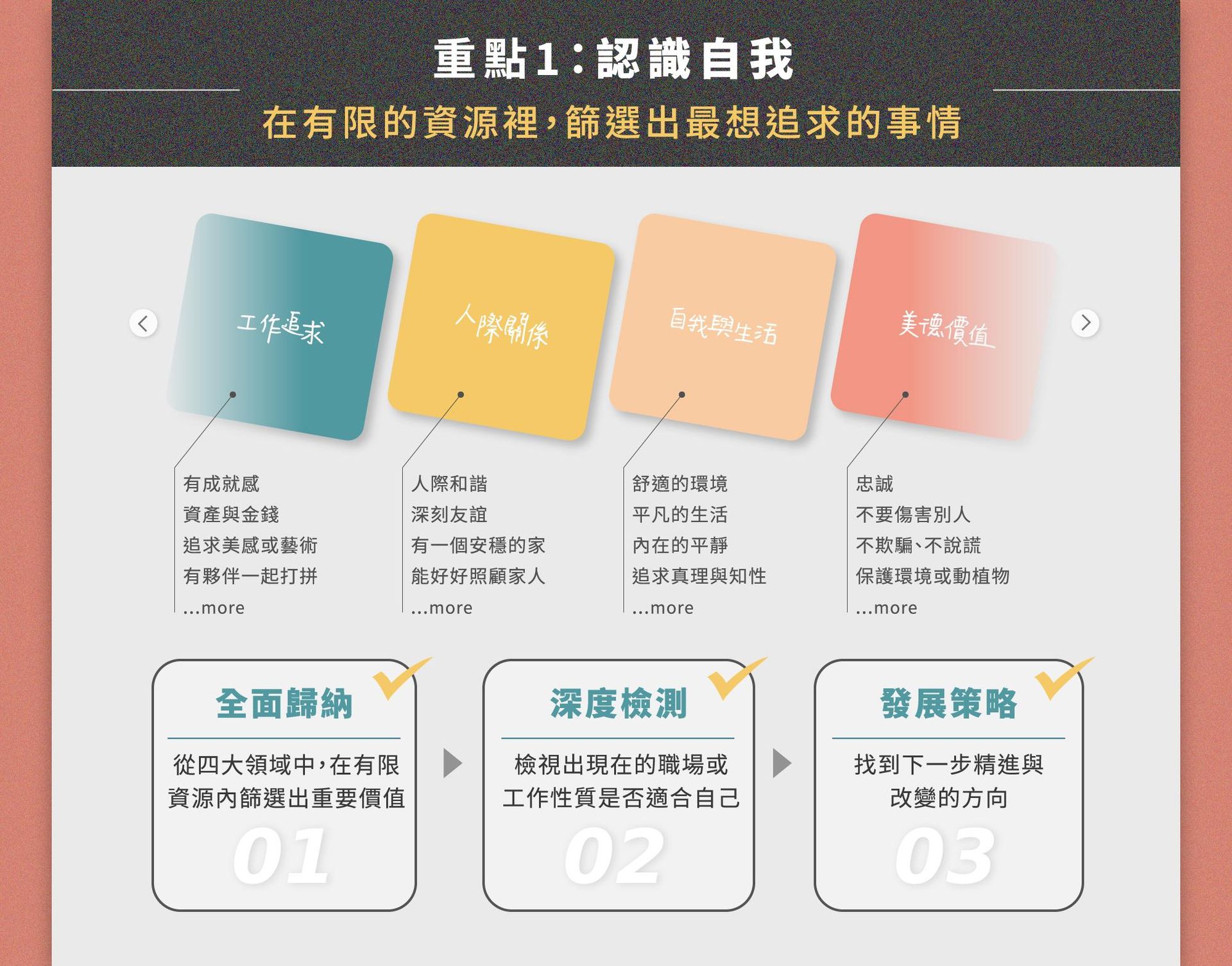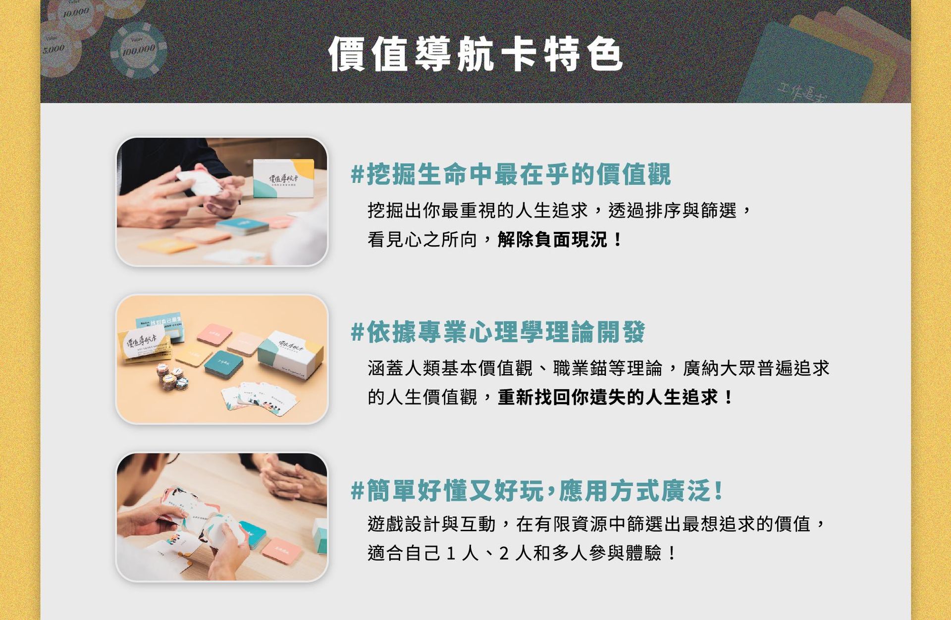透過講師結合理論與實作的講解, 更加深入且靈活地掌握價值導航卡的應用,跟隨自我價值讓職涯不再失落徬徨!