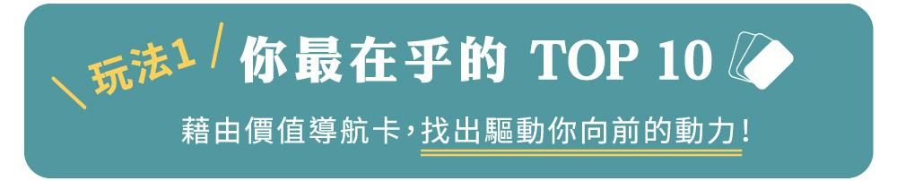 - Step 2:從「重視」的牌卡中,再篩選出最重視的前十名價值觀。