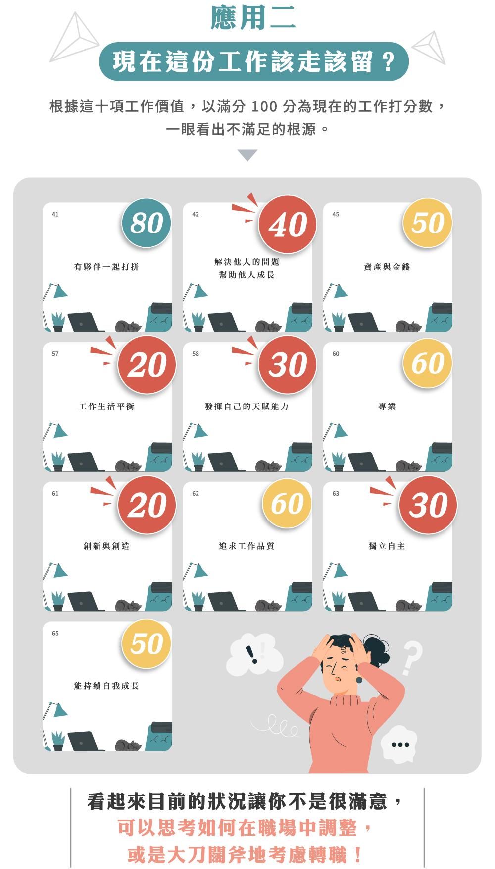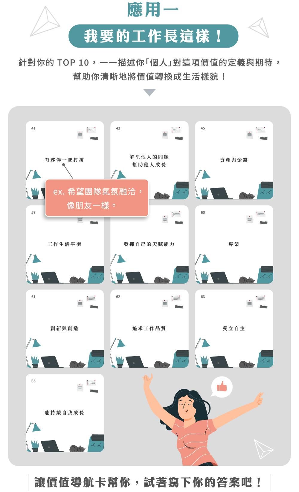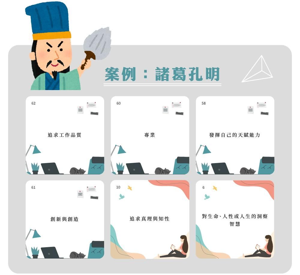 - Step 1:以「工作追求」領域為例,從此領域的全部牌卡中,